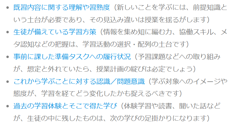 といった質問(アンケート)や、簡単な調べ学習を課してみると、生徒のアタマの中にあったことを外在化させ、捉えることができます。